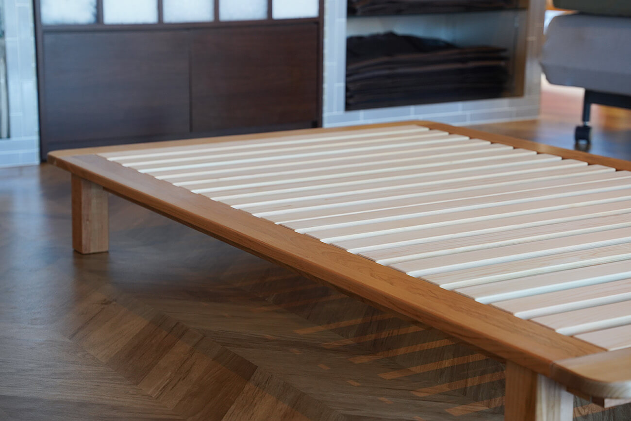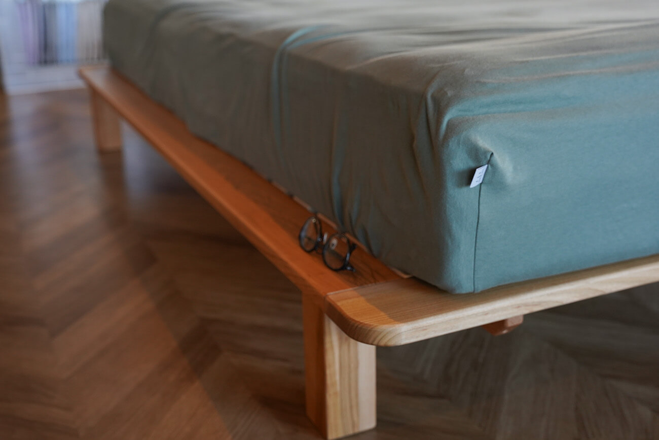 今回つくったのはセミダブルサイズ。上に置くマットレスはシングルサイズでもセミダブルサイズでも使えるようにしたい、という思いを込めて兼用スタイルにしました。