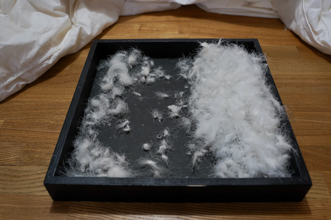 では、中に入っている羽毛の状態をチェックしていきましょう。