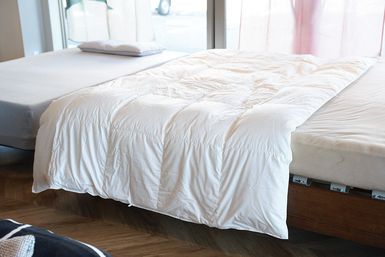 昨今の住宅事情において高気密・高断熱はもはやスタンダードになっていますので、室温に合わせた羽毛布団を使用することが快適な冬支度の要件になっています。
