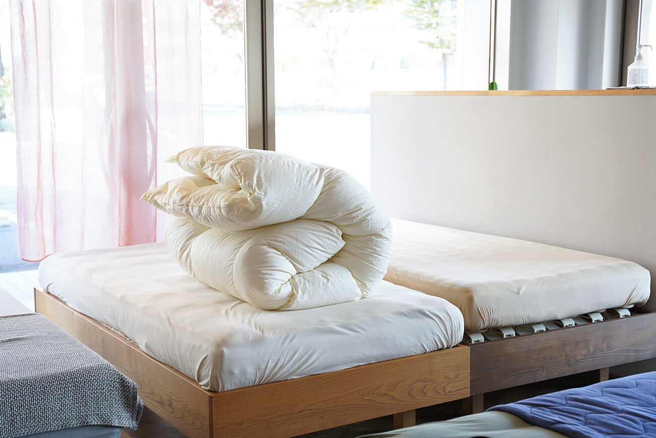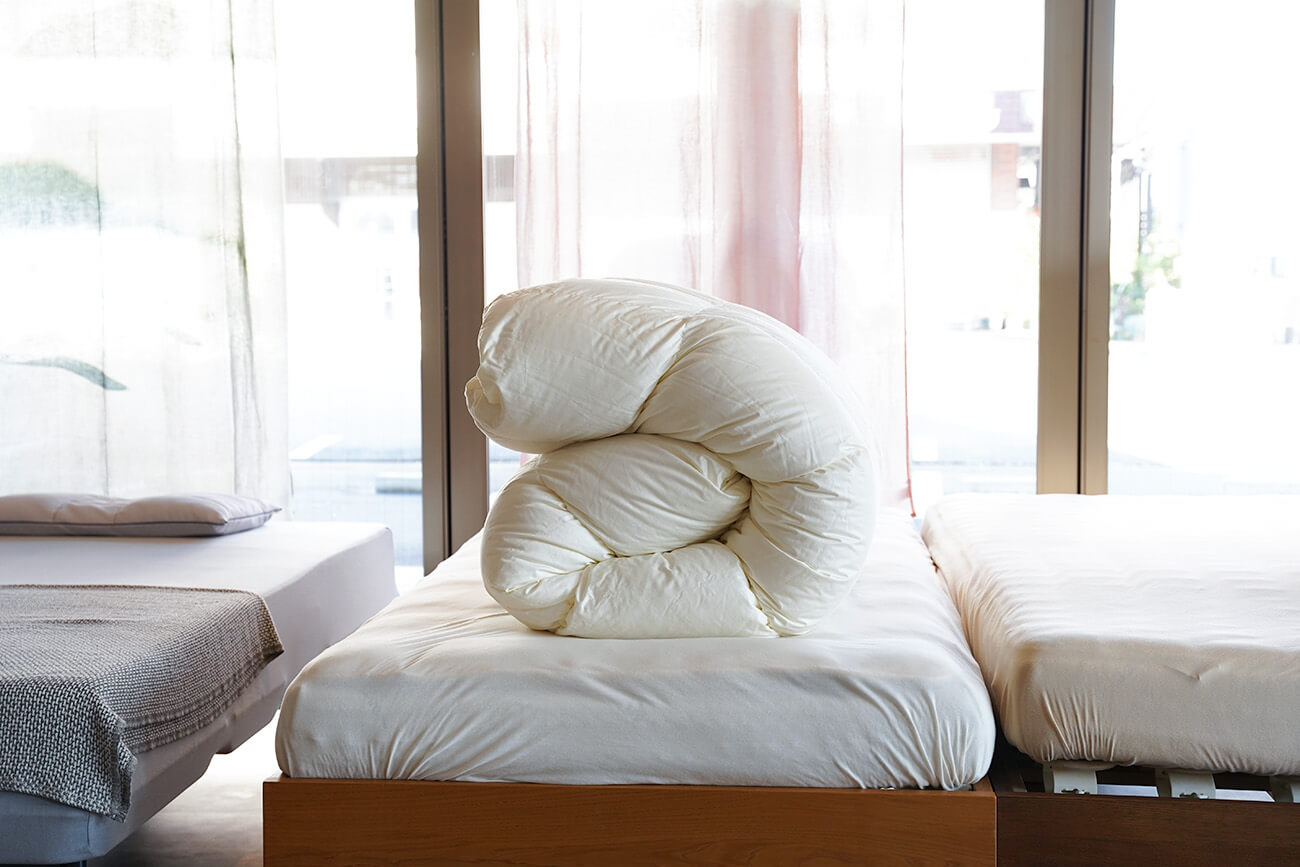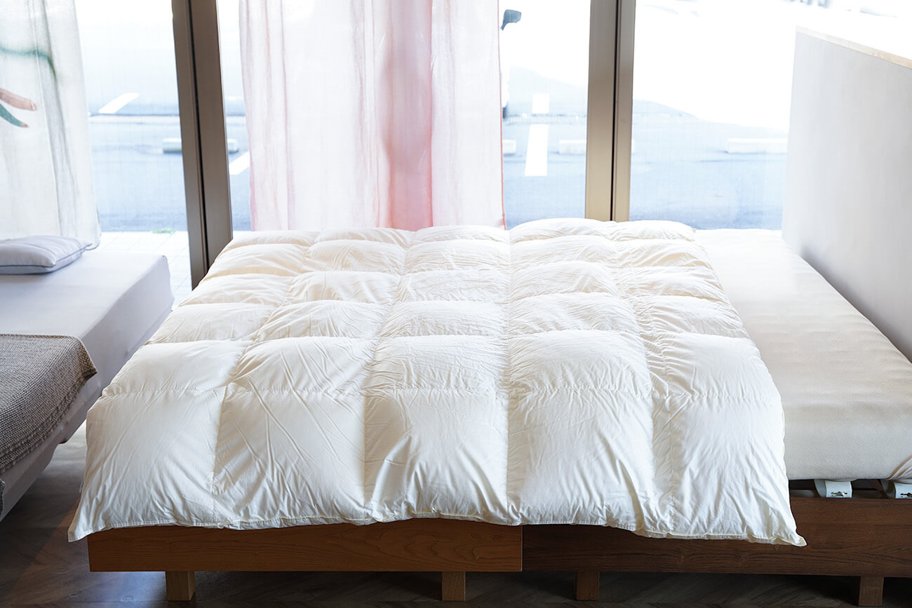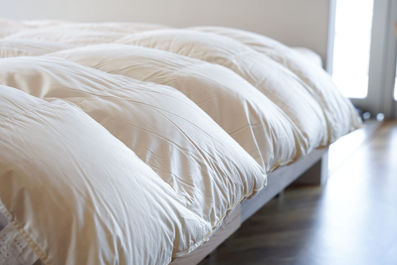 羽毛布団の醍醐味は「軽くてあったかいこと」。これを真冬だけ使用するにとどまってしまうのはもったいないです。
