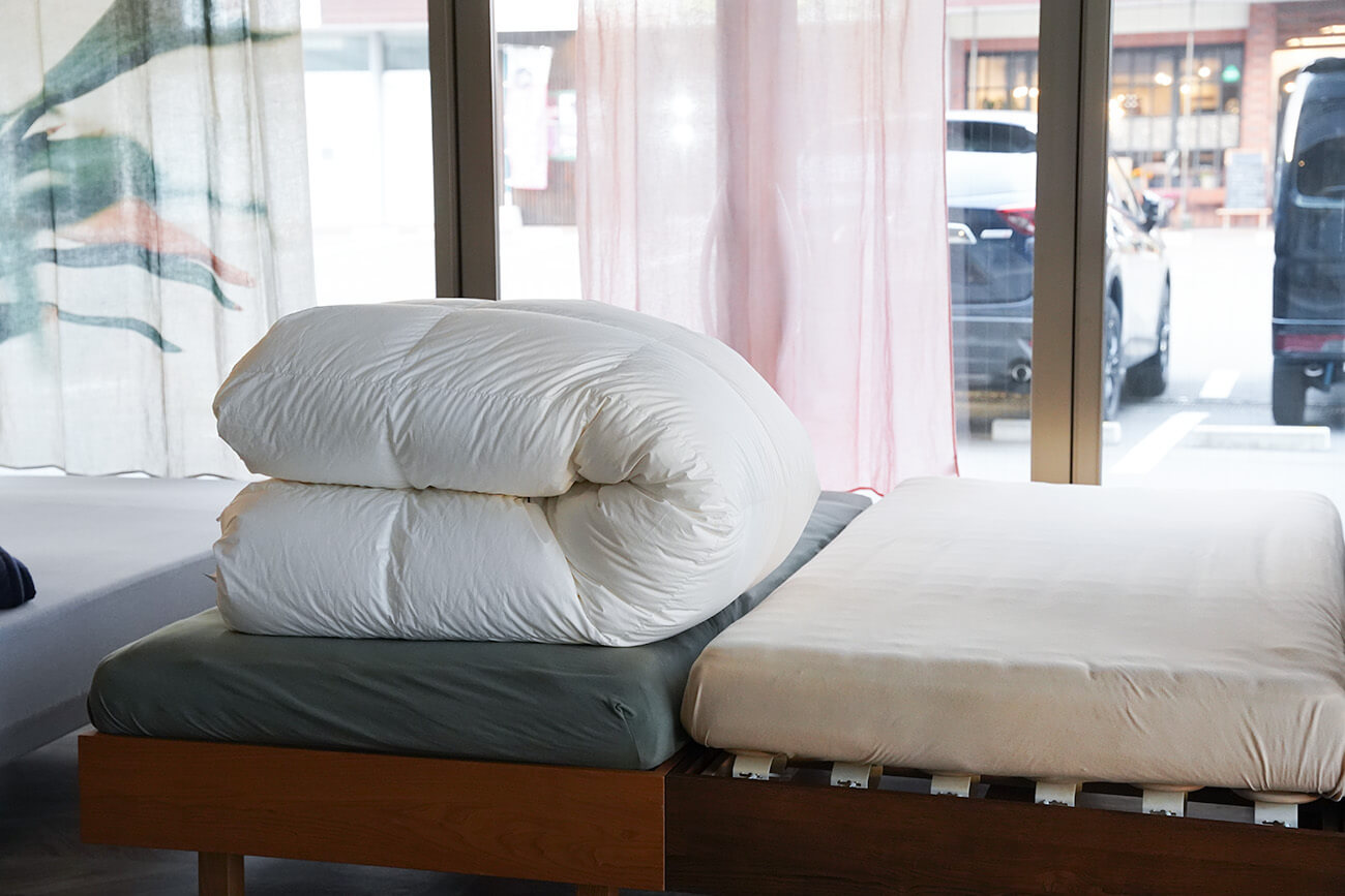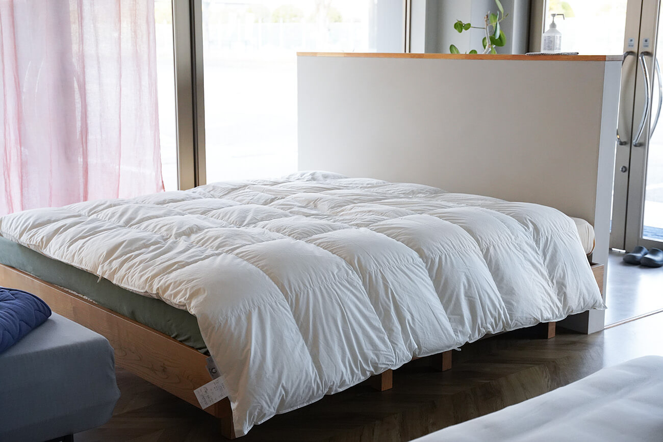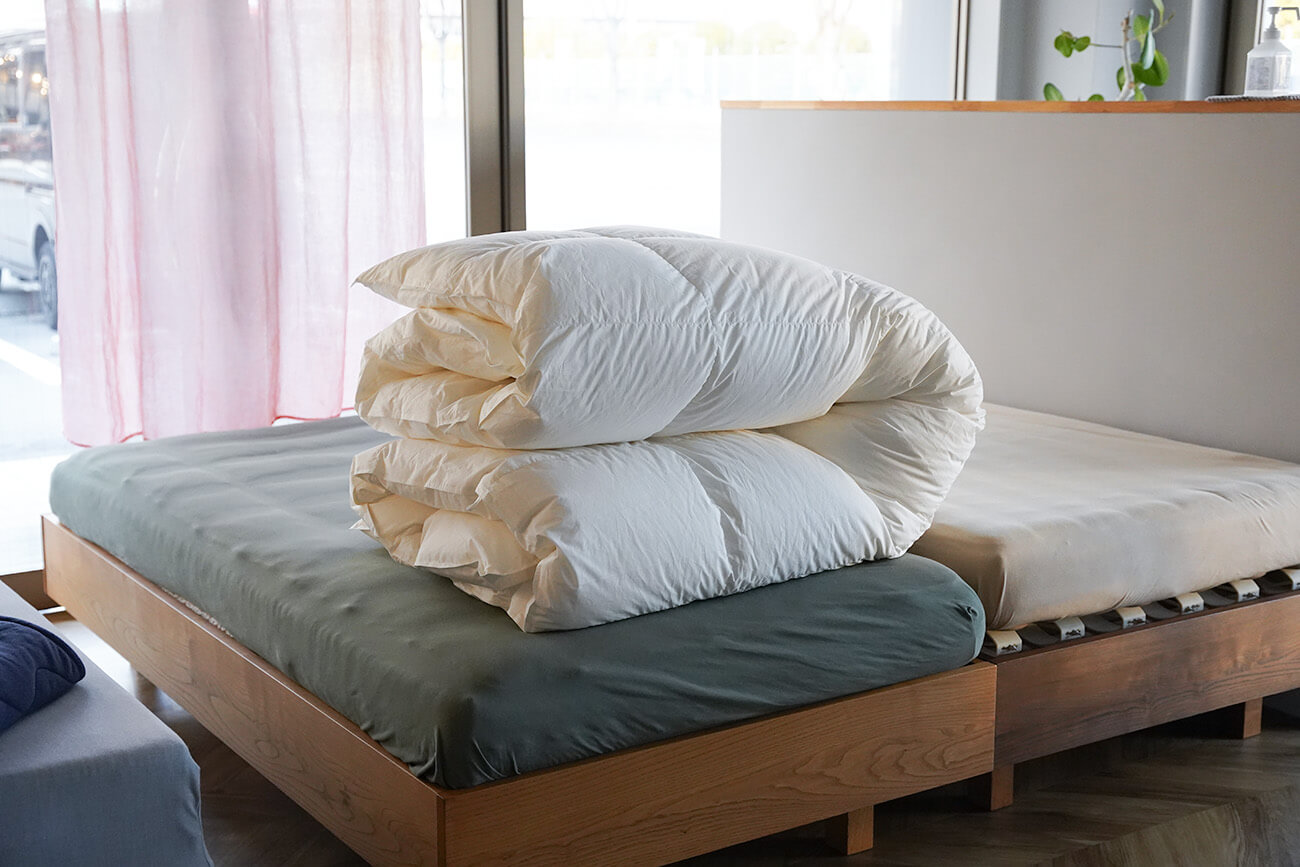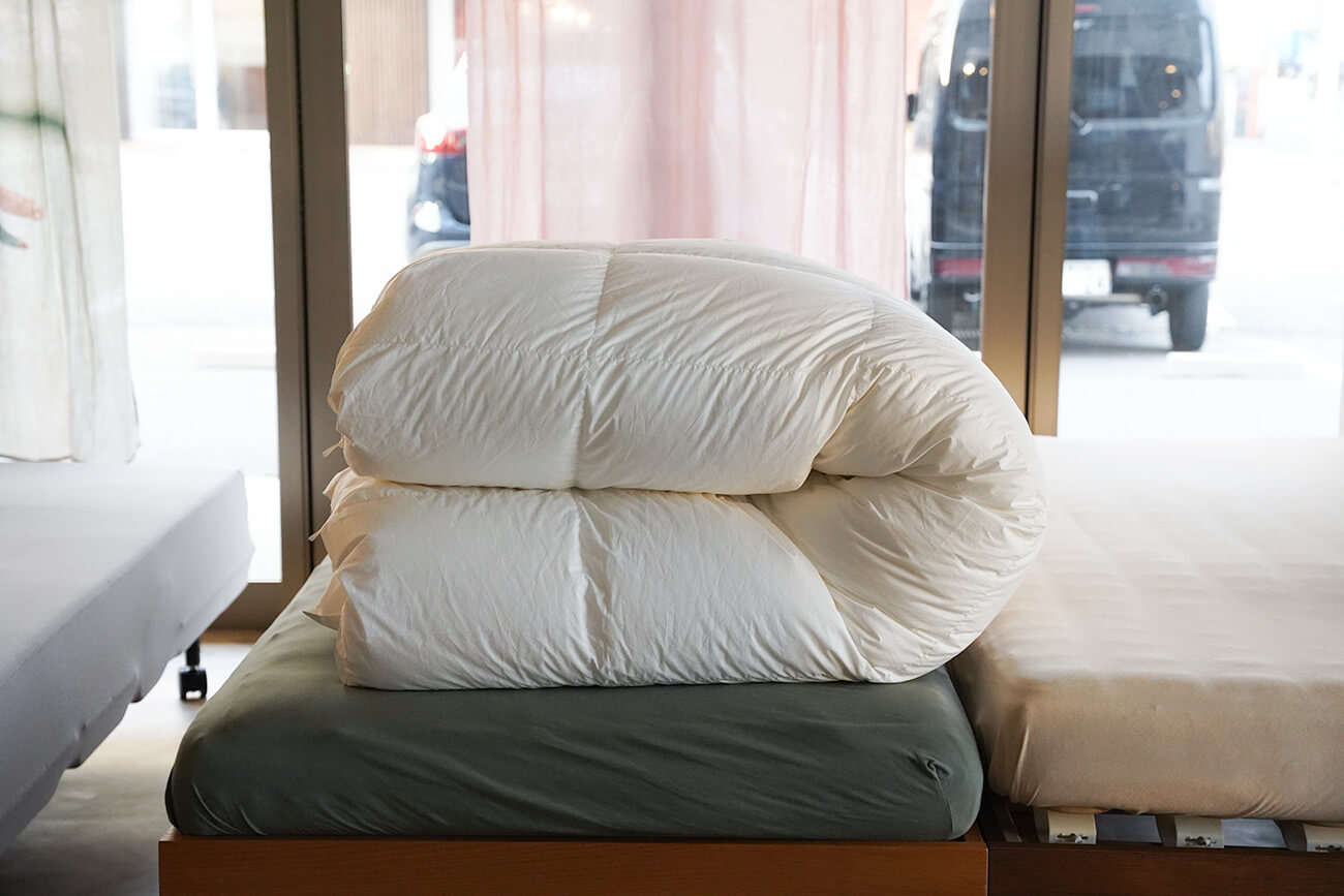 お客様と相談しているなかで「暑がりのご主人様のことを考えると、もう少し羽毛量を少なくしようか」という考えが頭をよぎりました。50g,100g少なくしてみようかな、どうしようかなと。